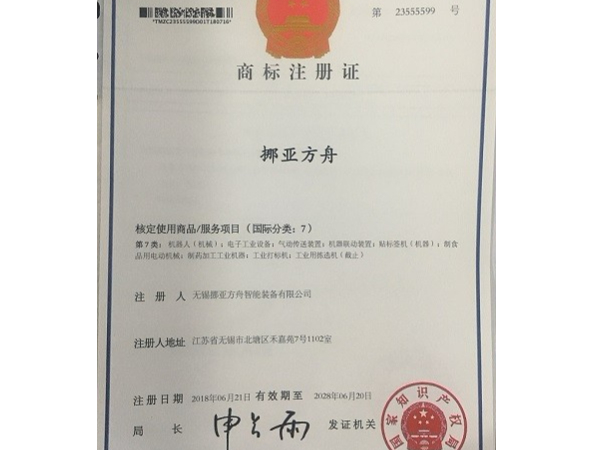 挪亞方舟商標注冊證